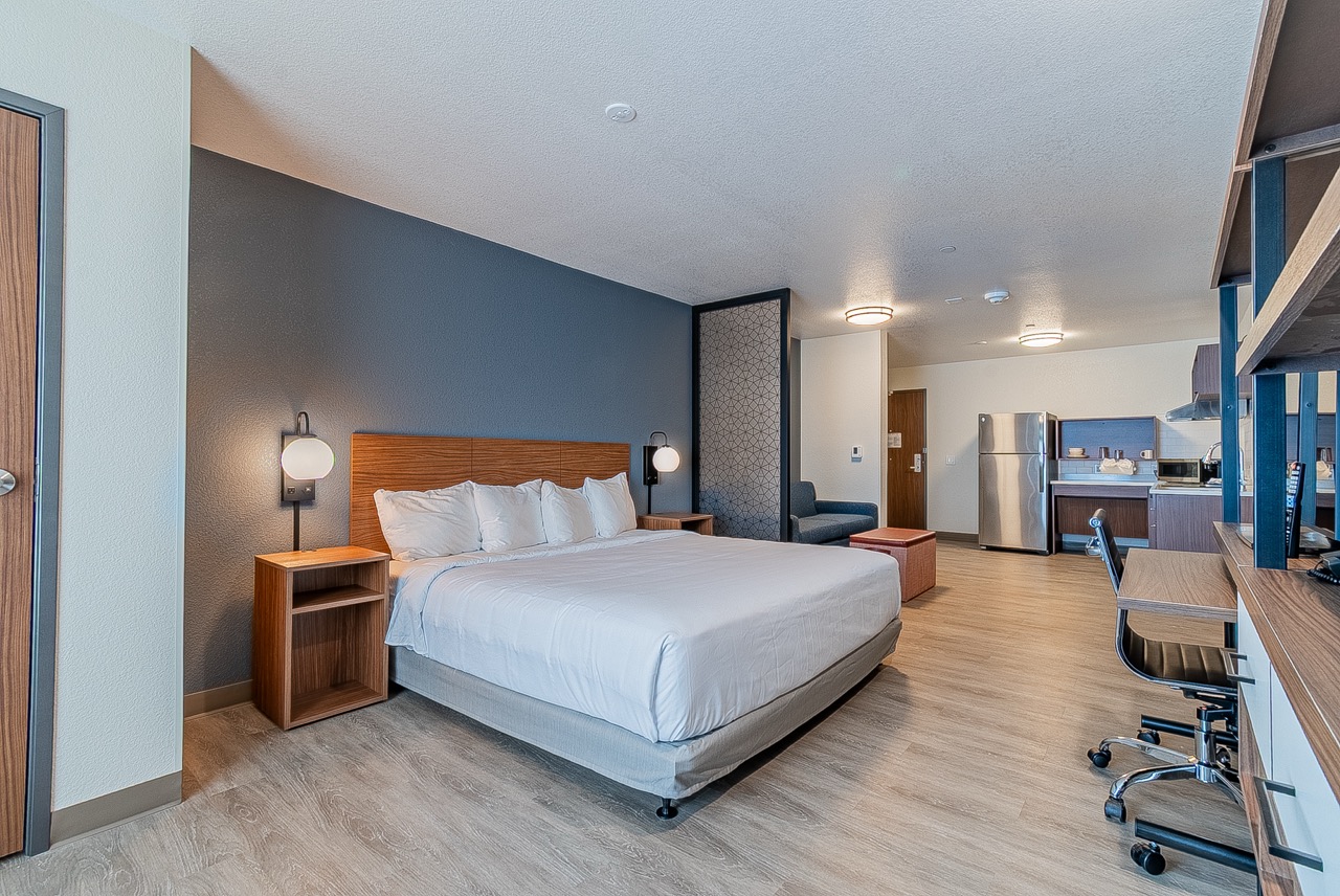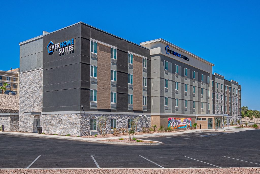 Parkway partnered with Choice Hotels to deliver a new four-story Everhome Suites in Yuma, Arizona. This 60,857 SF ground-up project includes 114 guest rooms designed with extended-stay travelers in mind. The wood-framed, slab-on-grade hotel features both studio and one-bedroom suites, each with a fully equipped kitchen and full-sized refrigerator to provide the comforts of home.