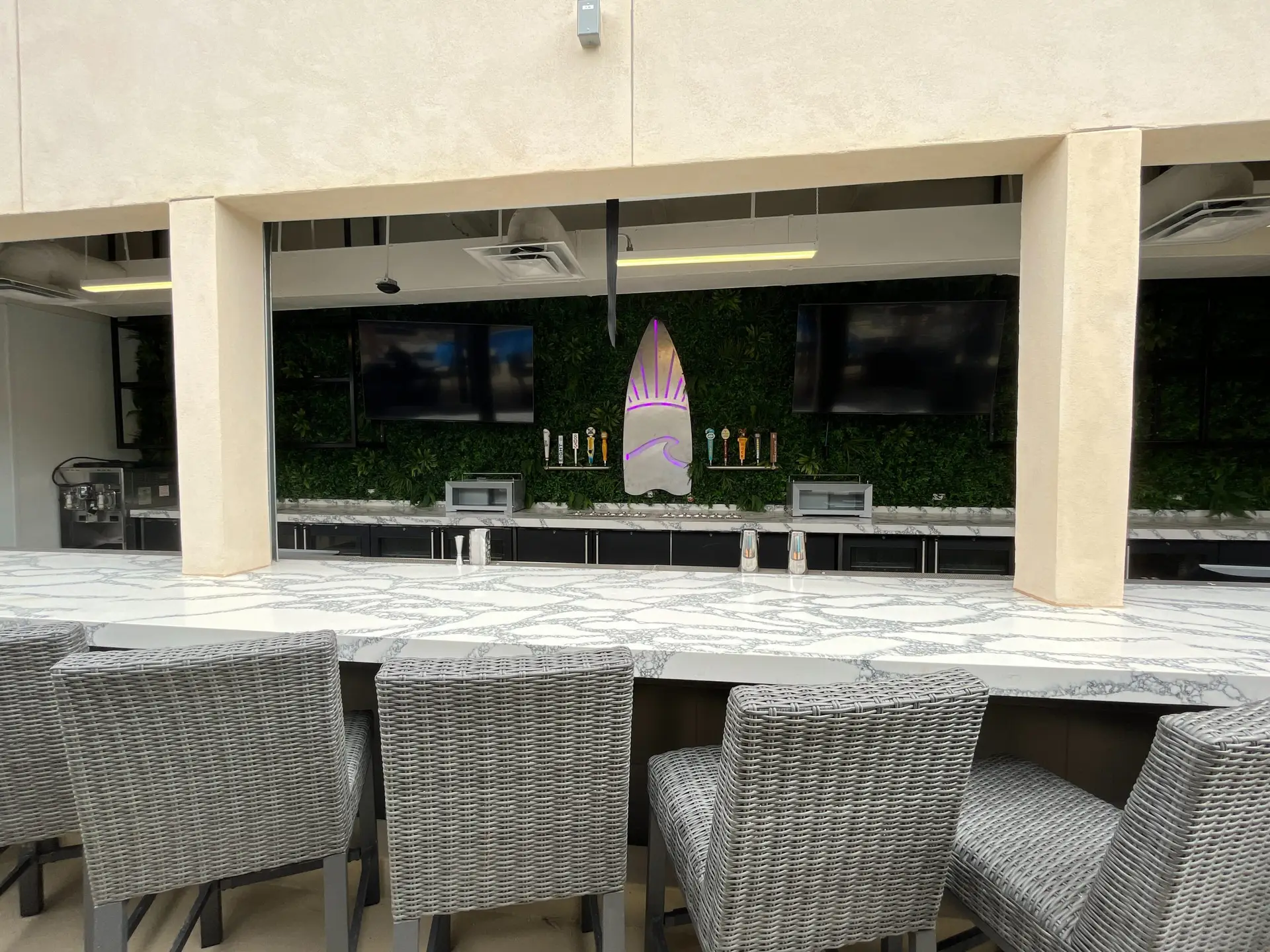 Indoor-outdoor transitions with retractable doors, blending climate-friendly design with coastal-inspired materials
